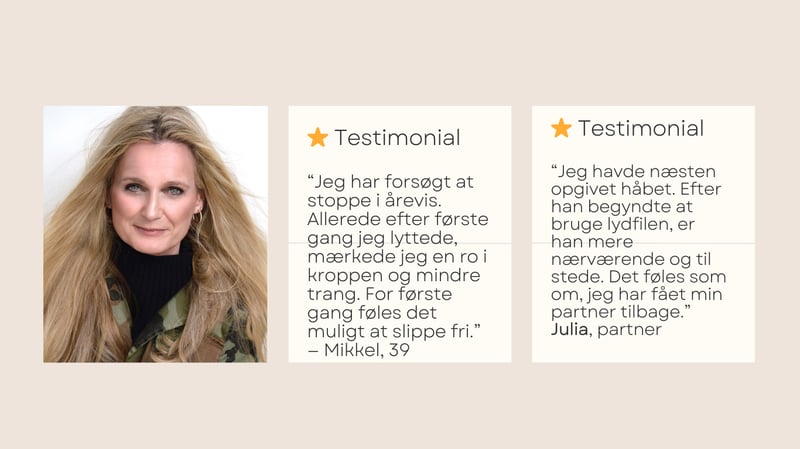 “Jeg har forsøgt at stoppe i årevis. Allerede efter første gang jeg lyttede, mærkede jeg en ro i kroppen og mindre trang. For første gang føles det muligt at slippe fri.”